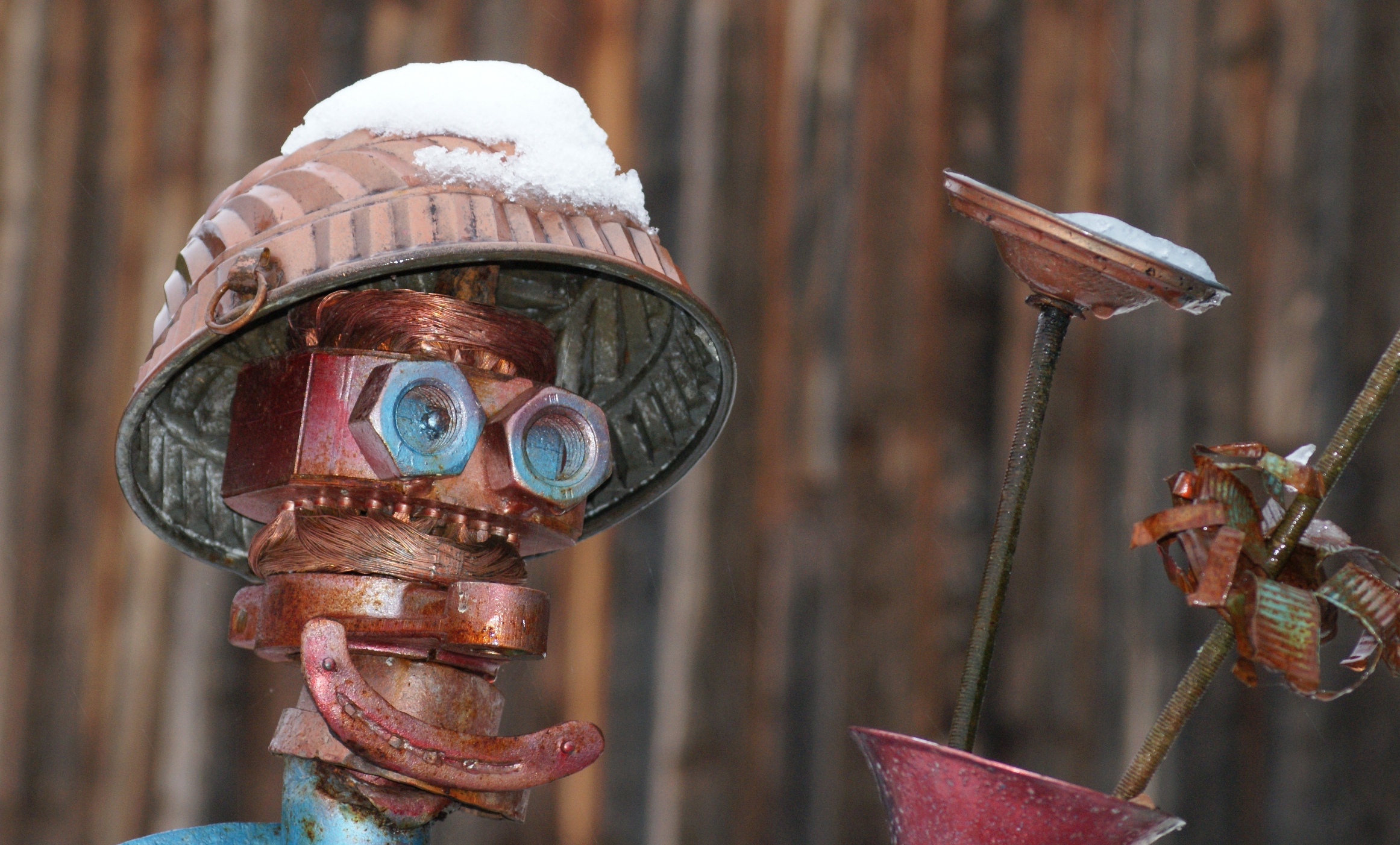 Diese Skulptur hat eine kleine weiße Haube bekommen