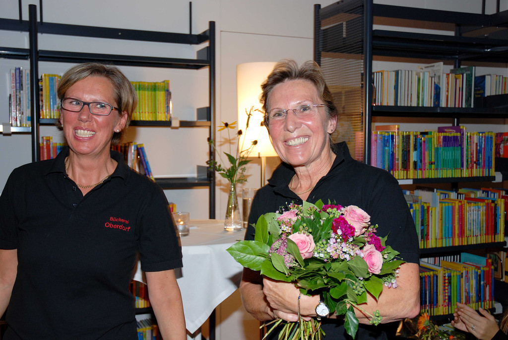 Monika Pillei übergab die Leitung der Bücherei an Christine Umflauft (li).