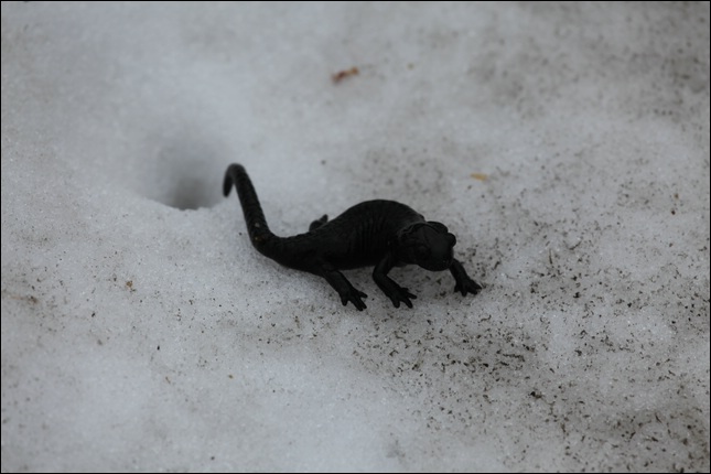 ein schwarzer Bergsalamander wurd gerettet....