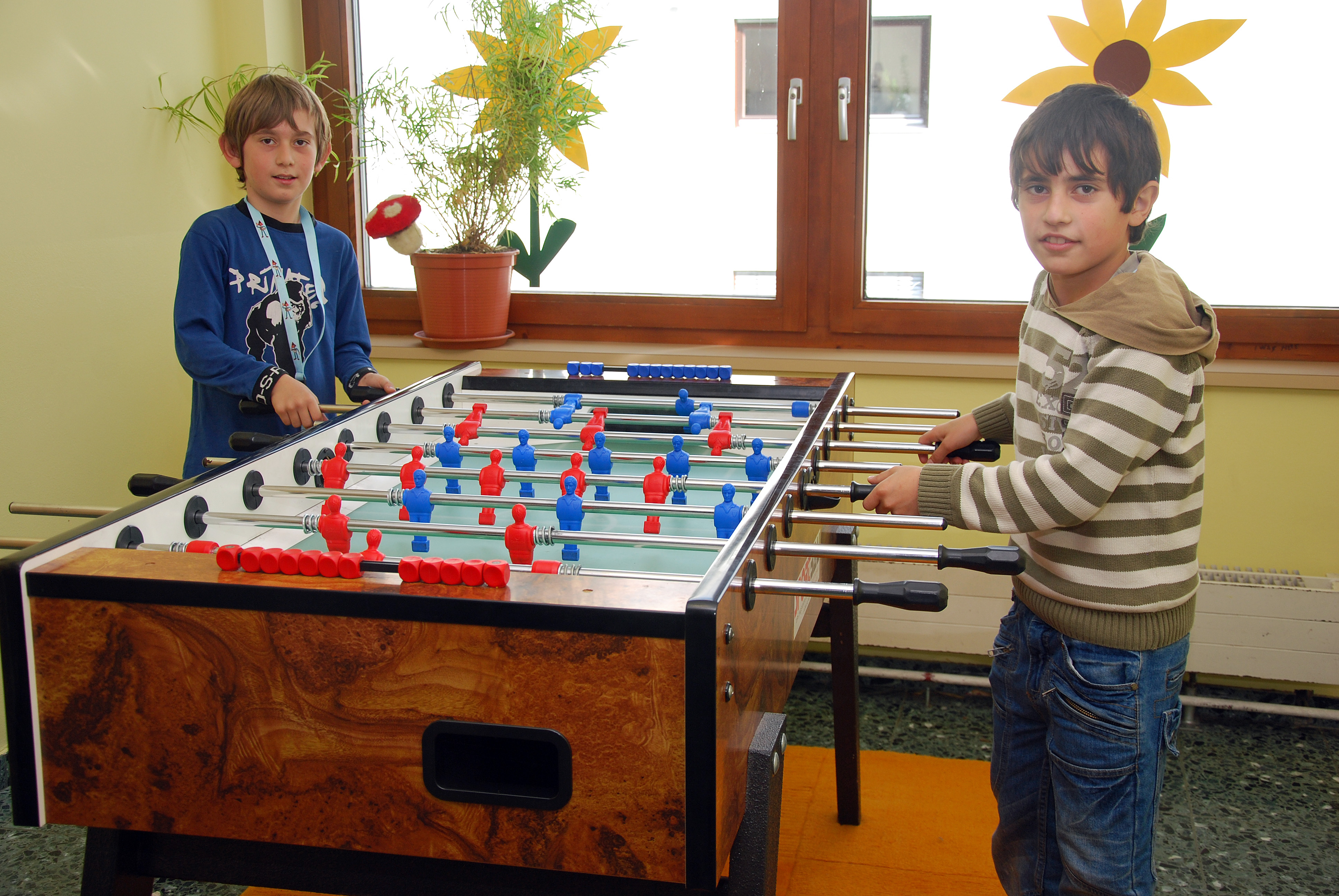 Ali und Timir verbrachten die meiste Zeit beim Tischfussballspielen.