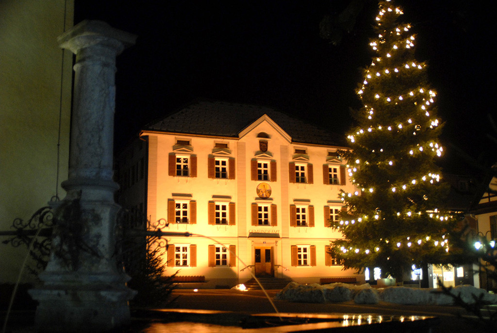 Gemeindeamt mit Christbaum am Schrunser Kirchplatz. (Foto: Gerhard Scopoli, 6. Dezember 2009)