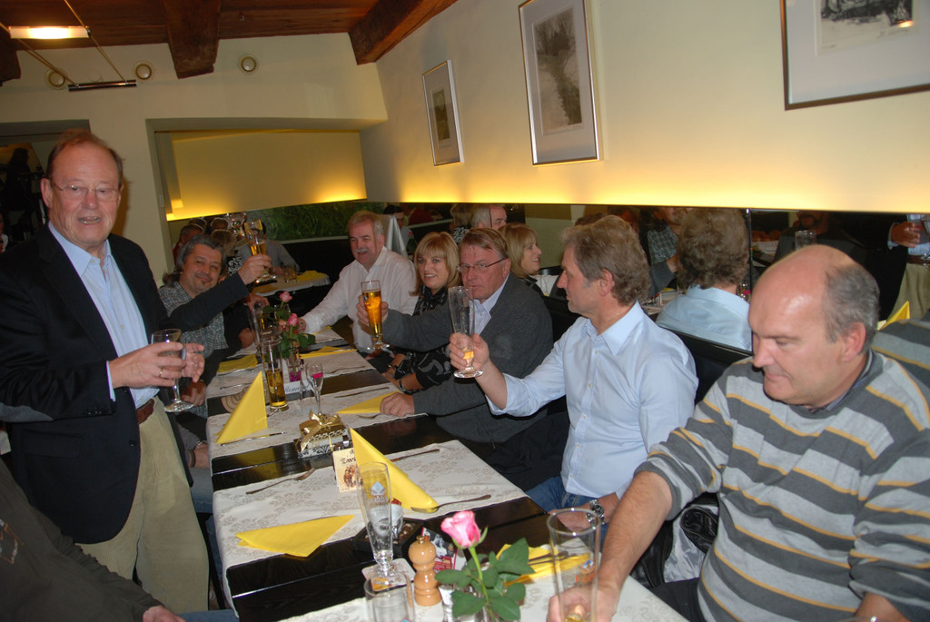 Die Freunde prosten dem Geburtstagskind zu.