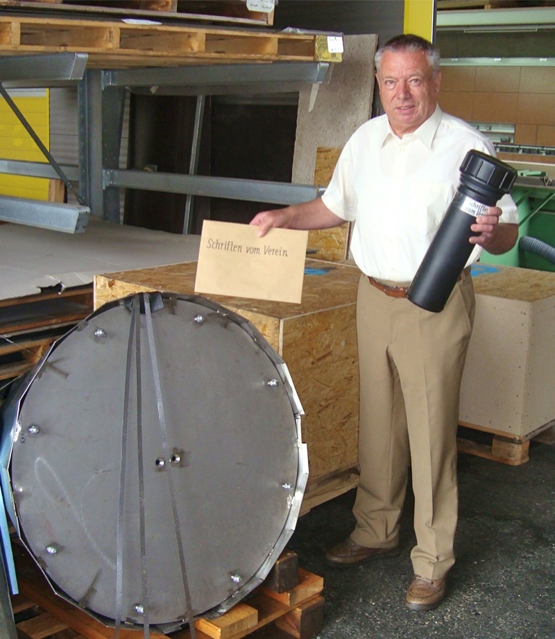 Werner Perfler beim Befüllen der Dokumentenhülse für die Turmkugel mit den Vereinsunterlagen und dokumentierten Bauabschnitten