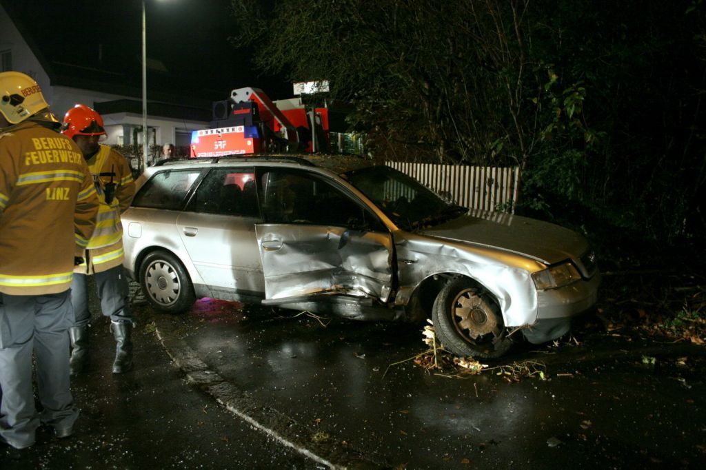 Bei einem Autounfall wurde ein Linzer in seinem Auto eingeklemmt.