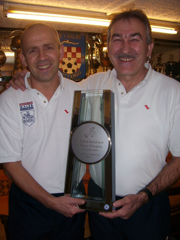 Niki und Ivica präsentieren stolz ihre Siegestrophäe aus Italien.