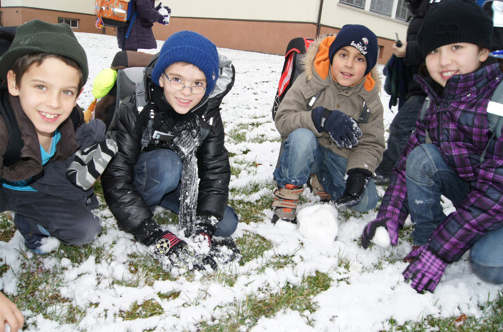 Das bisschen Schnee genügte den Schülerinnen und Schülern der zweiten Klasse VS Dorf für eine Schneeballschlacht.