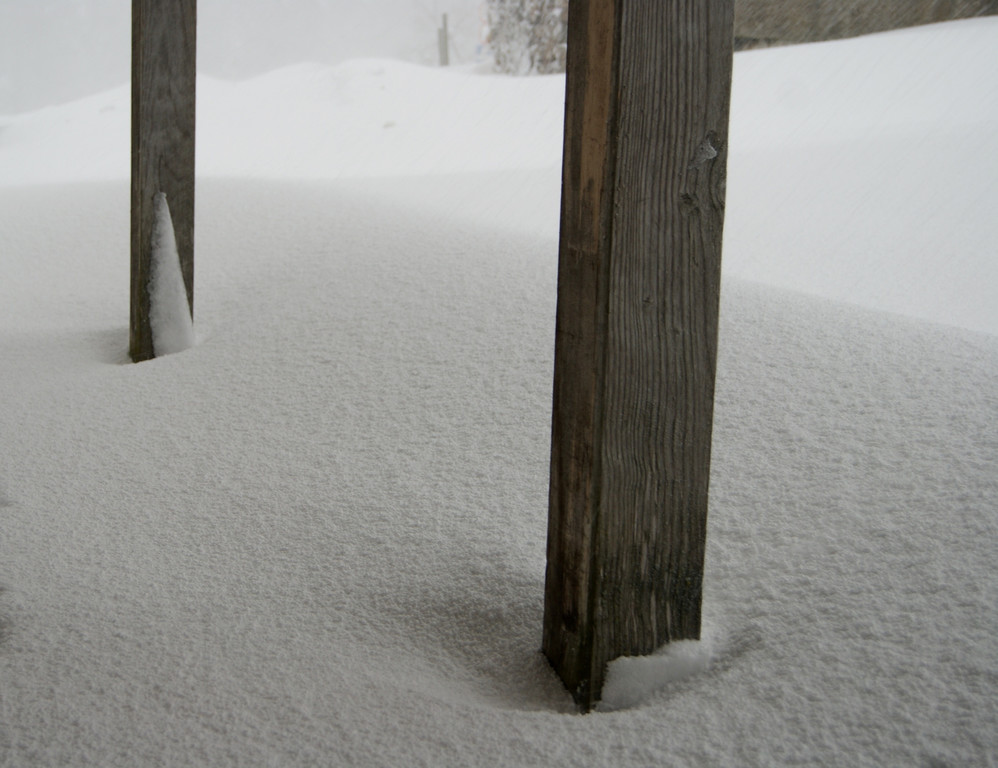 Die Schneeverwehungen dürften bei diesem Hauseingang noch für etwas Arbeit sorgen