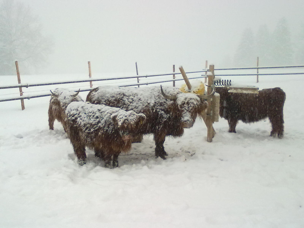 Hochlandrinder im Schnee