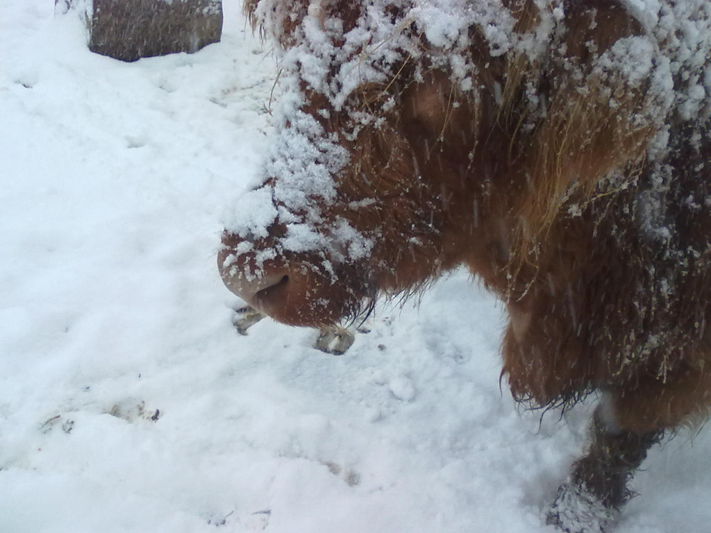 Hochlandrinder im Schnee