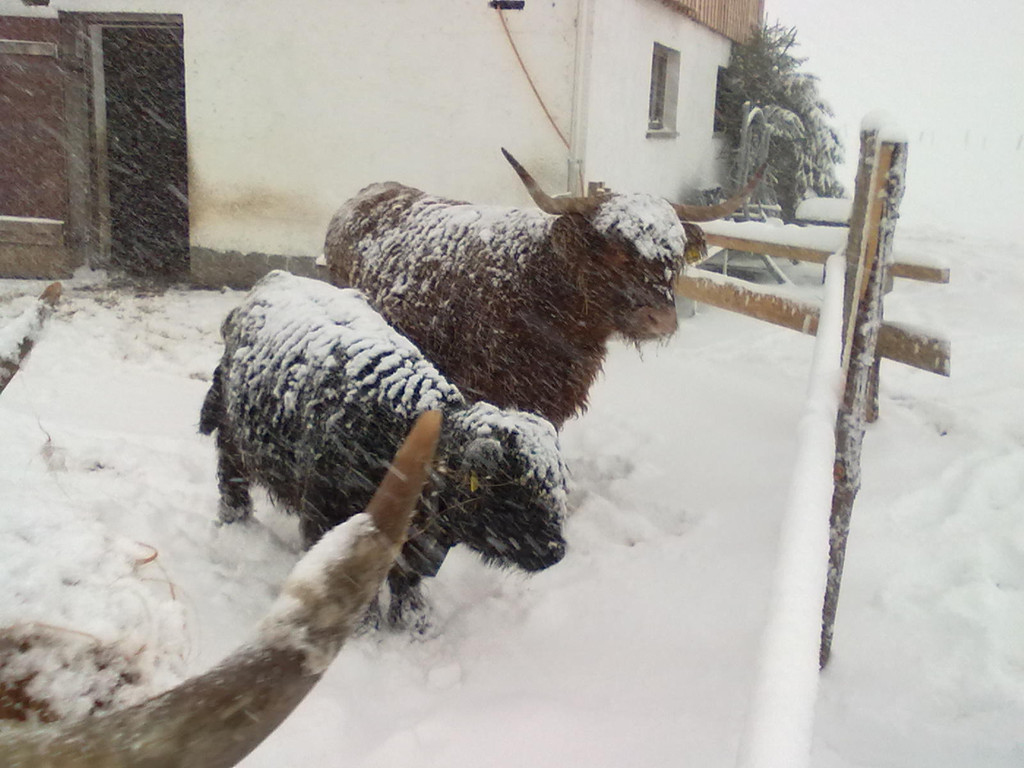 Hochlandrinder im Schnee