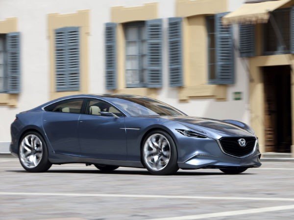 Mazda Shinari: Pünktlich zum 90-jährigen Firmenjubiläum will Mazda mit einem neuem Design beginnen. Die Studie Shinari, eine viertürige Sportlimousine, die nah an der Oberklasse kratzt, verkörpert erstmals die Design-Philosophie Kodo. Sie soll für Geschwindigkeit, Spannung und Verführung stehen...(Bild: Mazda)