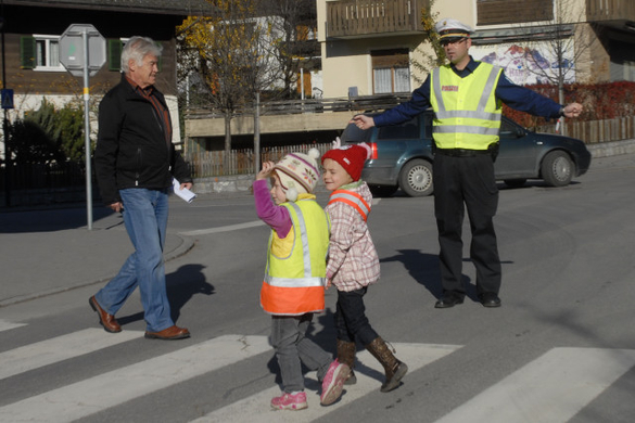 Im Ortszentrum von Schruns lernten die 3- bis 5-jährigen Kinder des Kindergartens St. Jodok jüngst, wie sie sich im Straßenverkehr richtig zu verhalten haben. (Foto: Gerhard)
