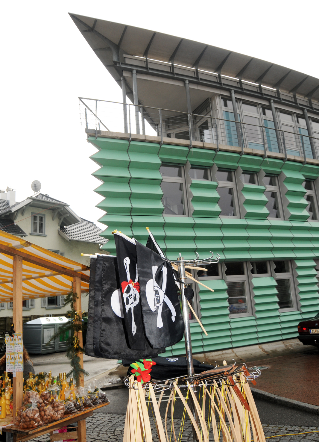 Piratenfahne vor dem Harder Rathaus-Schiff