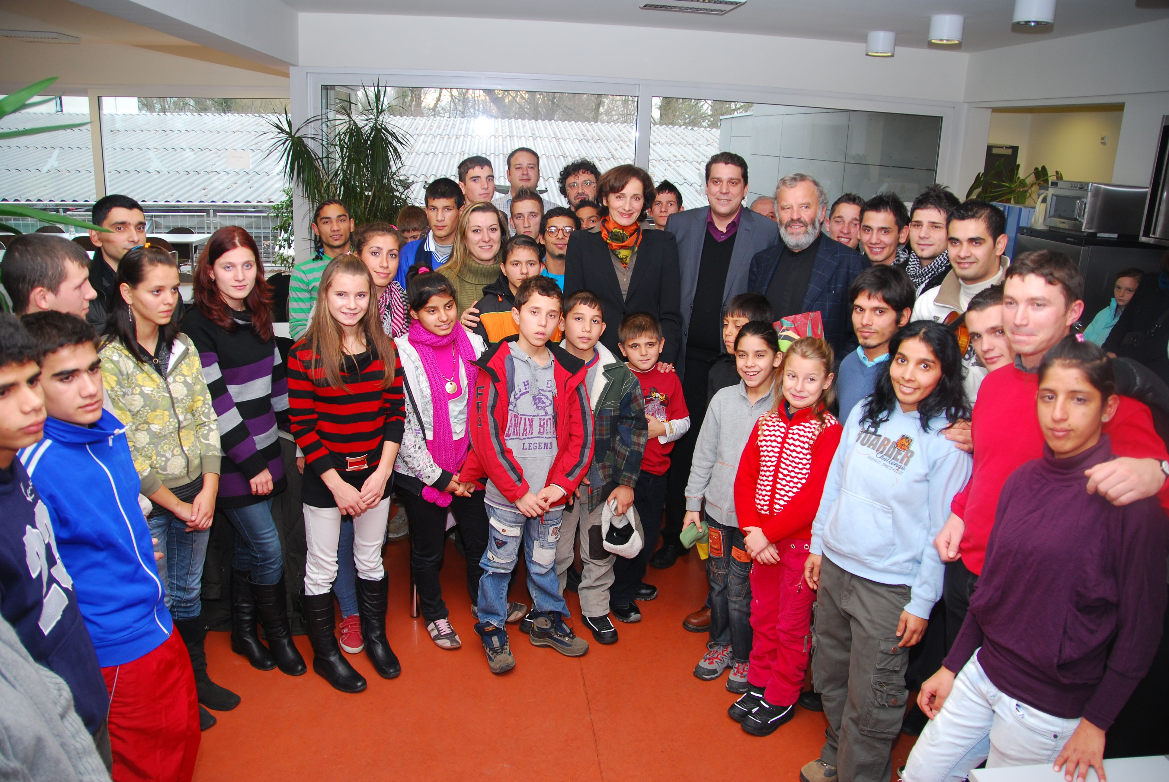 Empfang für Pater Sporschill und seine Kinder in der Jugendherberge in Hard.