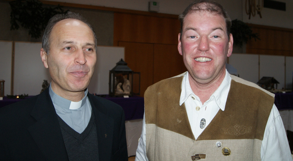 Pfarrer Paul Solomon mit Krippenchef Andi Eberle