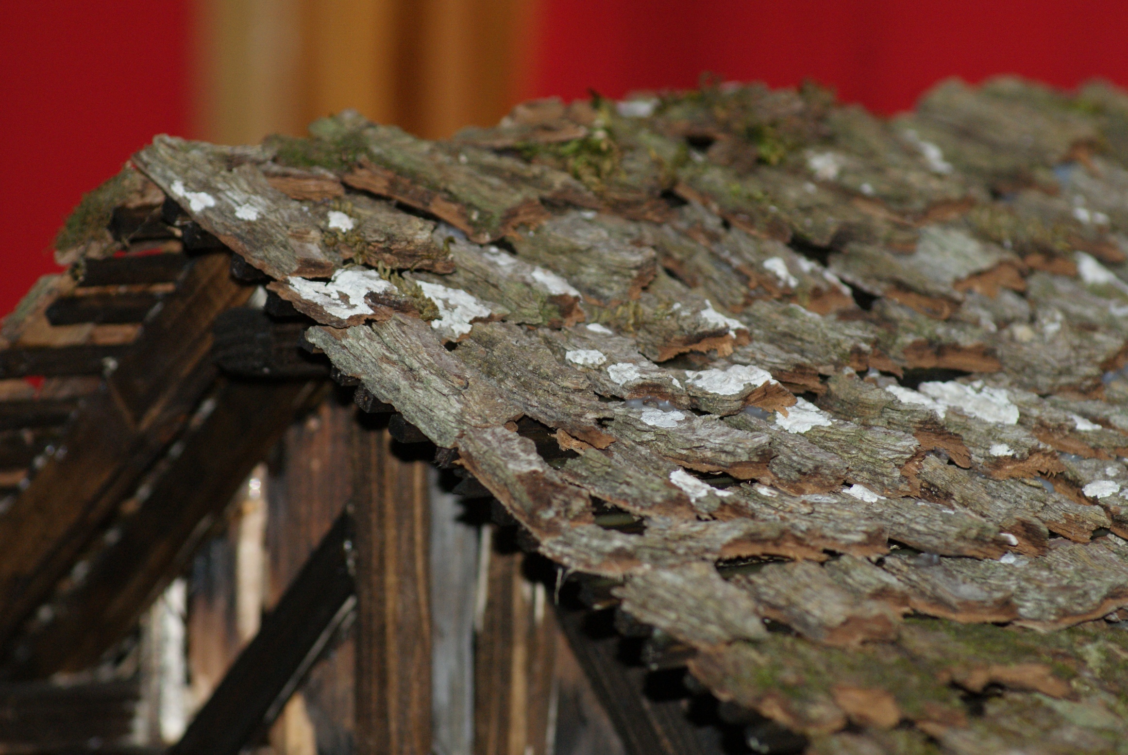 Viel Arbeit aber schön anzuschauen: Dachgestaltung bei einer alpenländischen Krippe