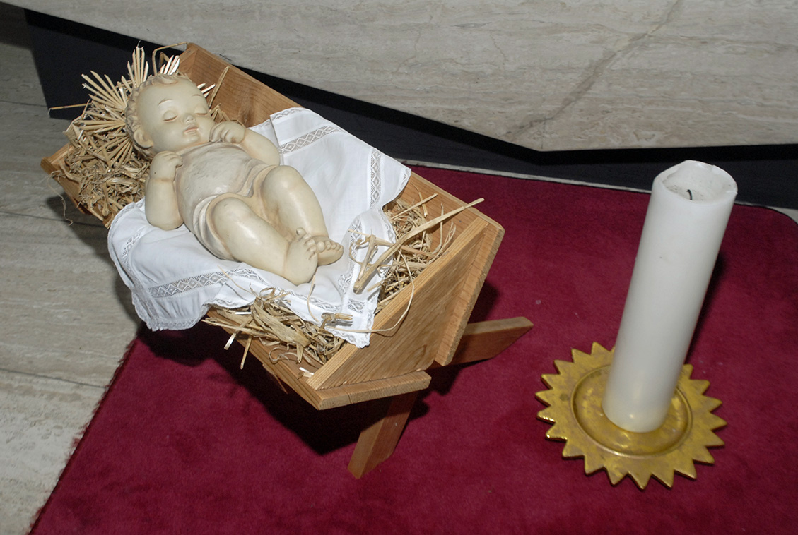 Das Jesukind vor dem Altar der Kirche Gantschier. (Foto: Gerhard Scopoli, 25. Dezember 2010)