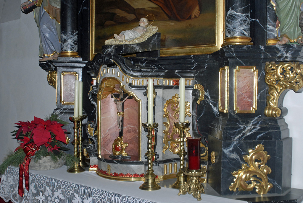 Jesukind in der Krippe über dem Tabernakel der Pfarrkirche St. Anton im Montafon. (Foto: Gerhard Scopoli, 25. Dezember 2010)