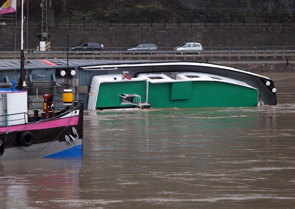 Gekenterter Tanker im Rhein
