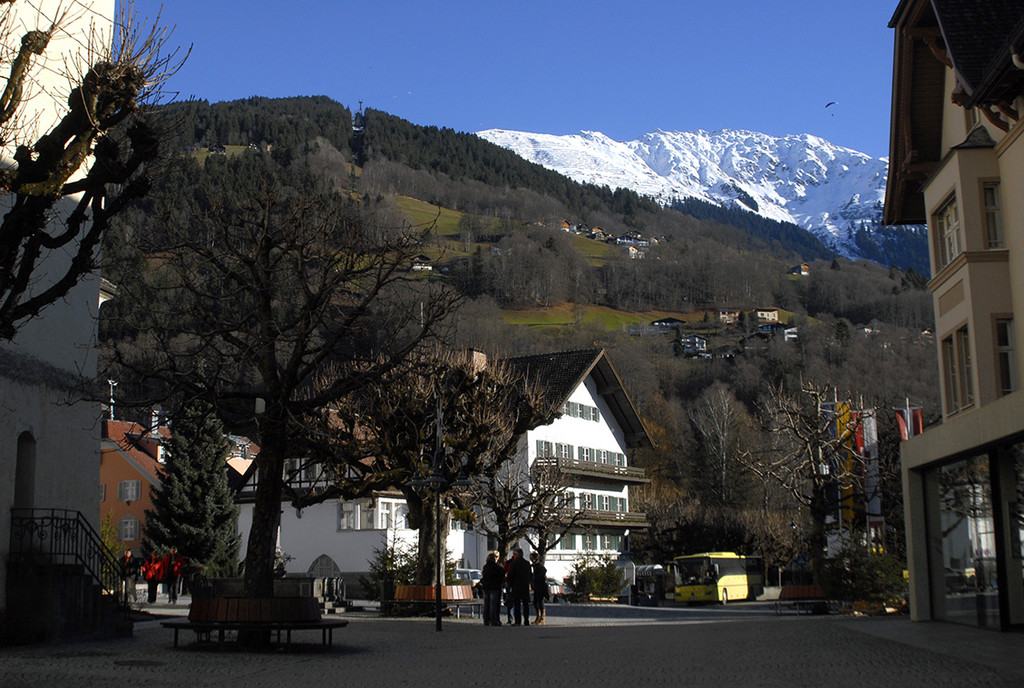 Hotel Taube gegen Kapell in Schruns. (Foto: Gerhard Scopoli, 16. Jan. 2011)