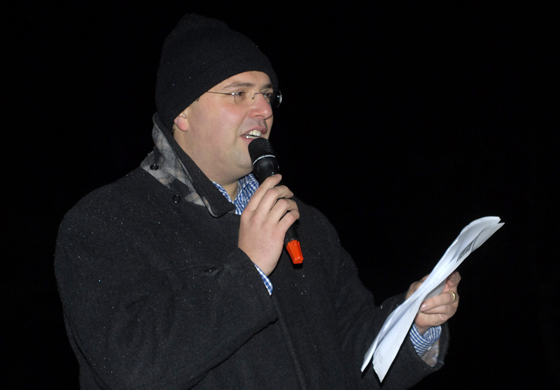 Beim Volksrodelrennen übernahm Manuel Bitschnau, Geschäftsführer des Schruns-Tschagguns Tourismus, die Rolle des Platzsprechers. (Foto: Gerhard Scopoli, 6. Jänner 2011)