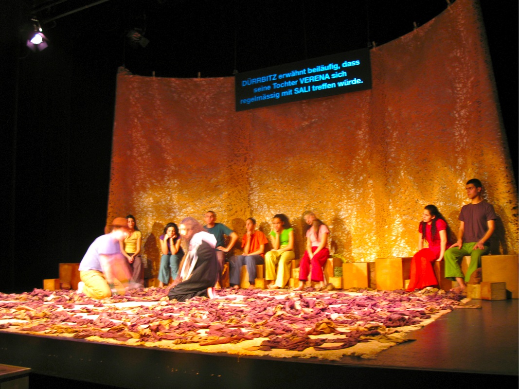 Mit Übertiteln sowie deutsche Monologe wurde das Stück trilingual