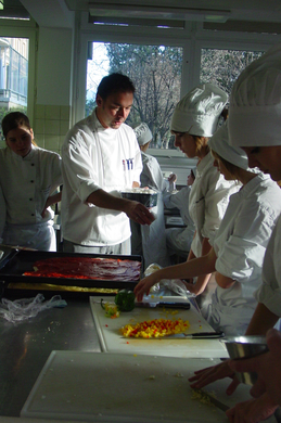 Robert Rewitzer betreut die Schülerinnen in der Küche