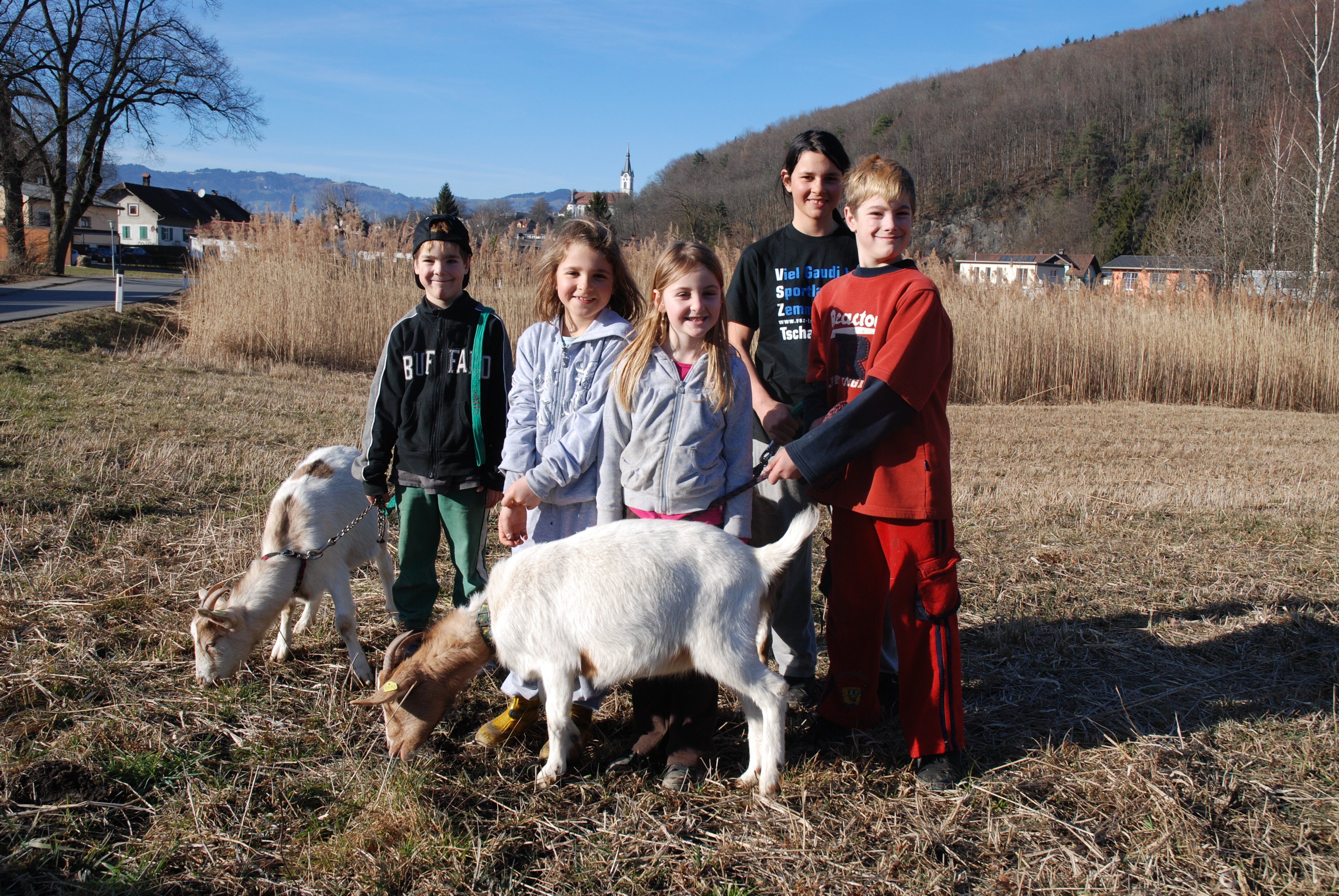 Spaziergang mit Ziegen
