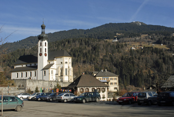Pfarrkirche Tschagguns gegen Bartholomäberg. (Foto: Gerhard Scopoli, 8. Februar 2011)