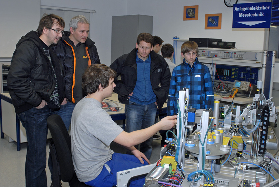 Lehrling Martin Drissner am Sortiermodell. Bild: Lehrlingsinfotag 2011 in Rodund im Montafon. (Foto: Gerhard Scopoli)
