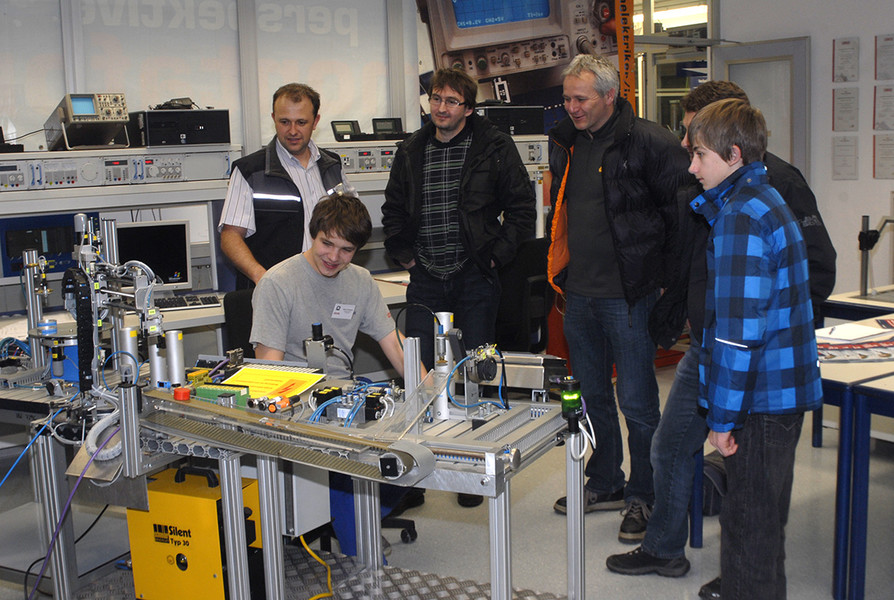 Lehrling Martin Drissner am Sortiermodell. (Foto: Gerhard Scopoli, 28. Jänner 2011)