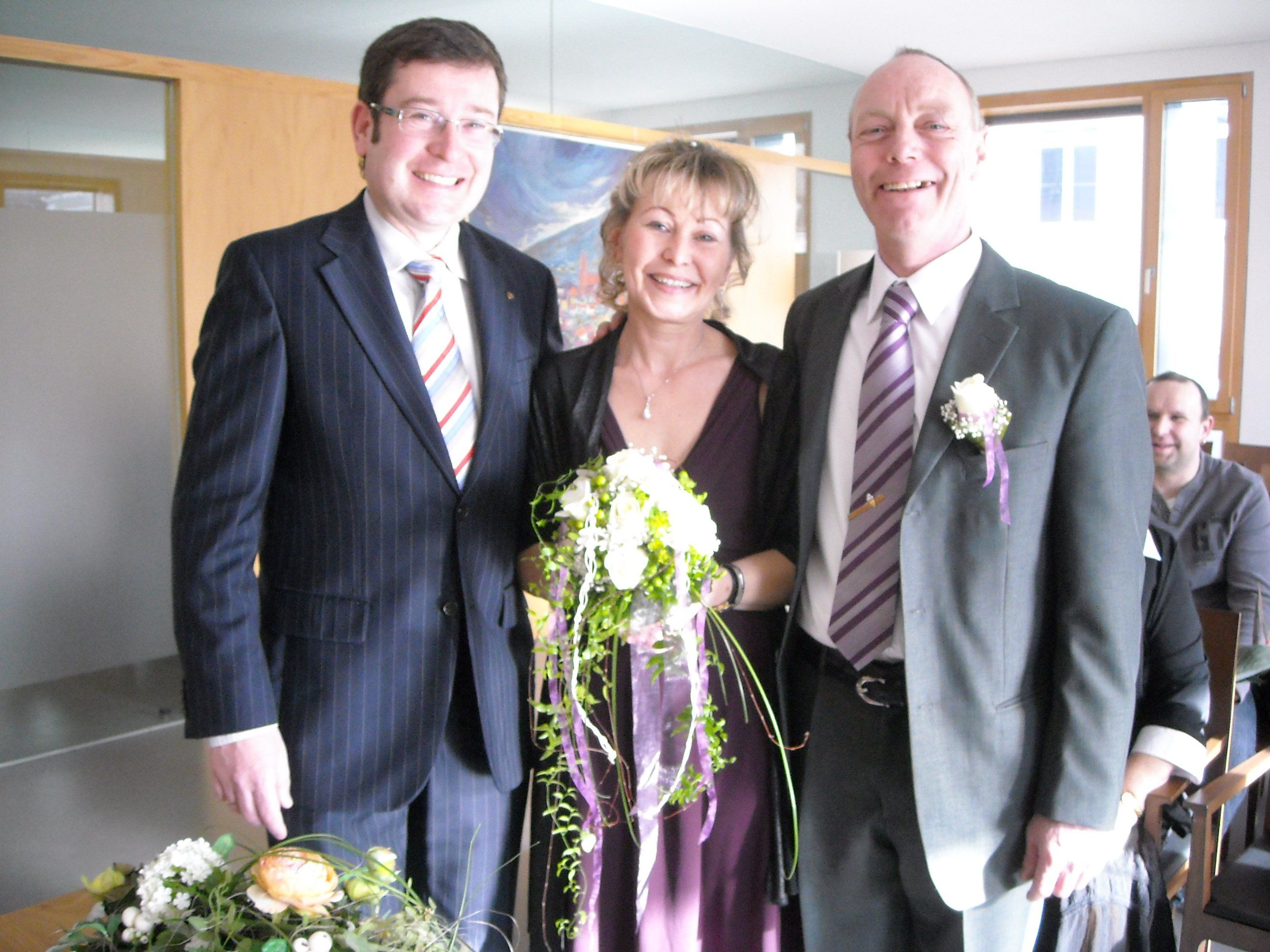 Standesbeamter Gerhard Rosemann mit dem Hochzeitspaar.
