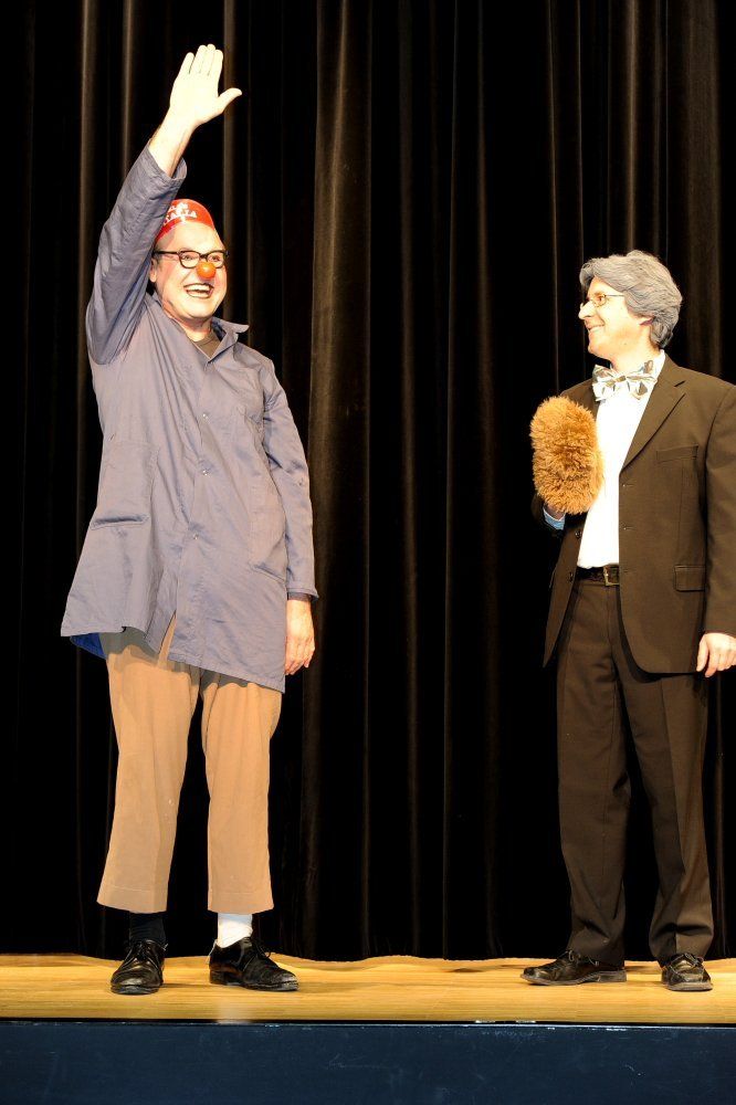 Clown Thiemo Dalpra und Markus Pferscher, der künstlerische Leiter der Musikschule tonart.