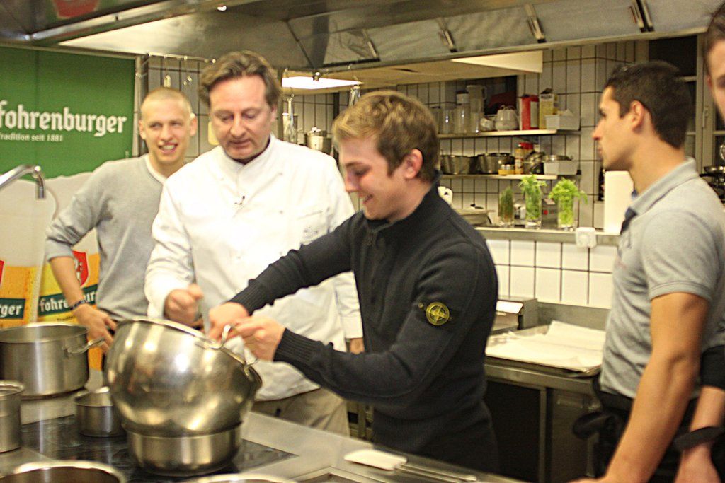 Die Spieler des cashpoint SCR Altach bekochten ihren Trainer und Vorstand sowie natürlich die lieben Frauen.