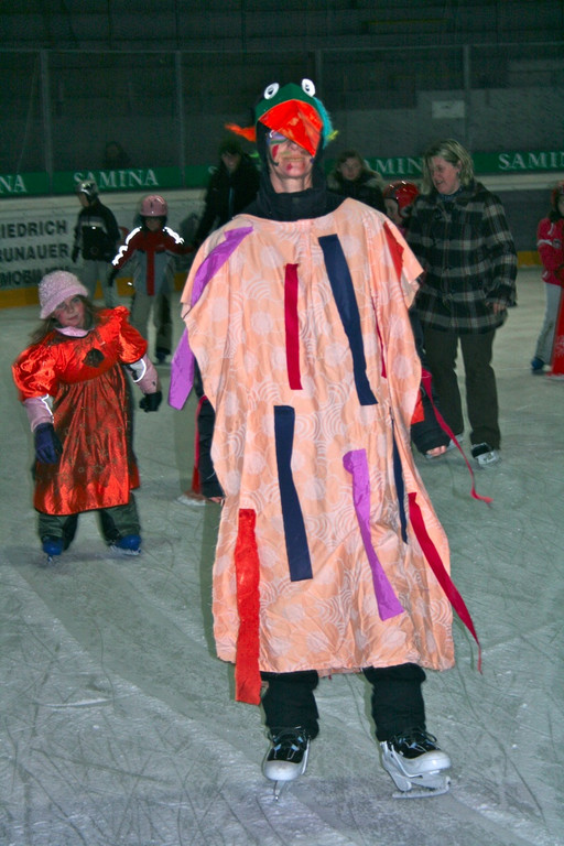 Viele bunte Vögel auf dem Eis