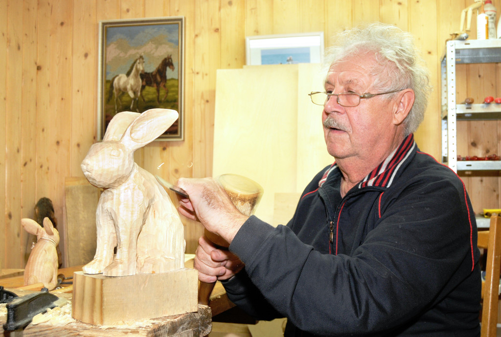 Wilfried Gehrer arbeitet an einer Hasenfigur