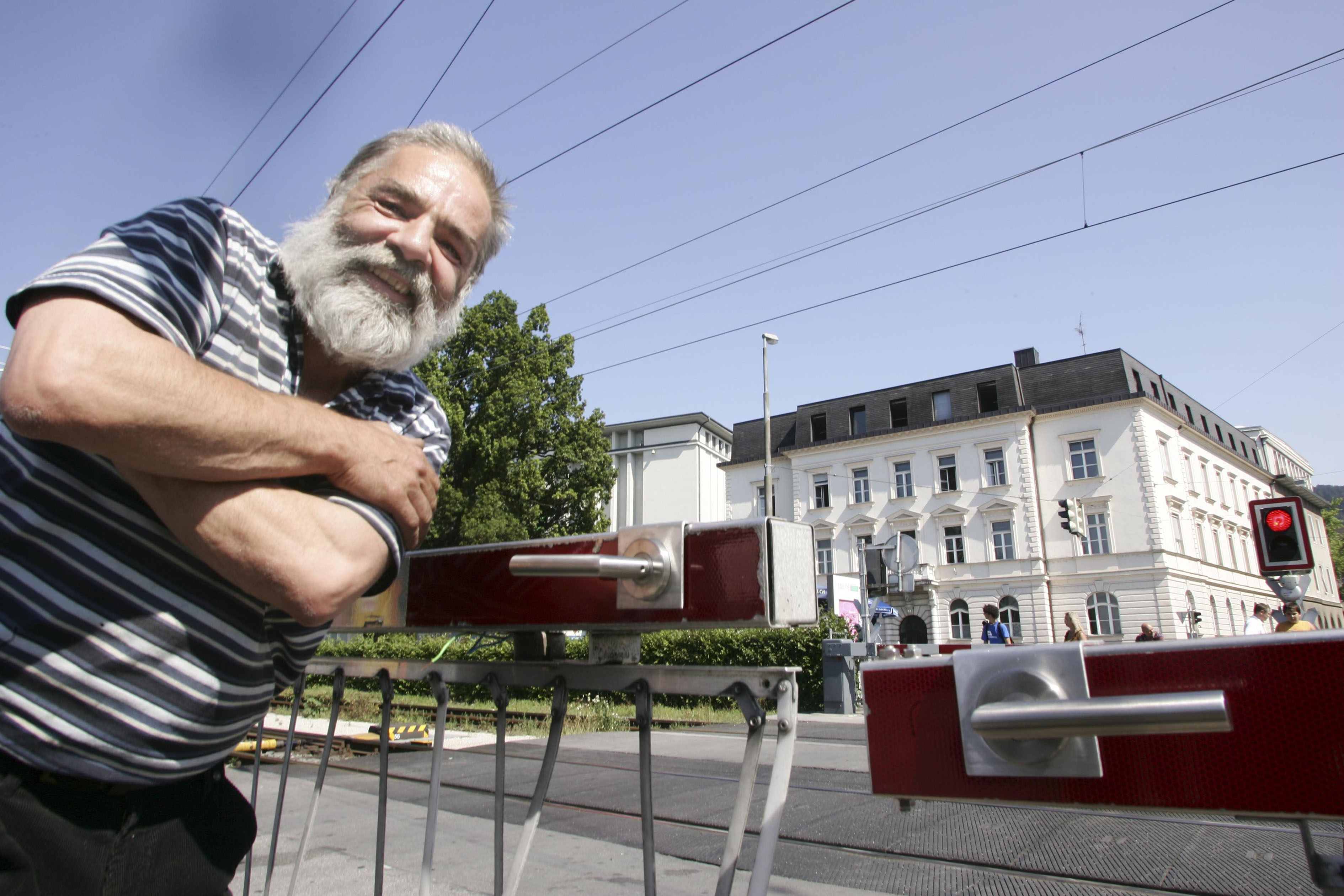 Wif und seine Türklinken am Bahnschranken.