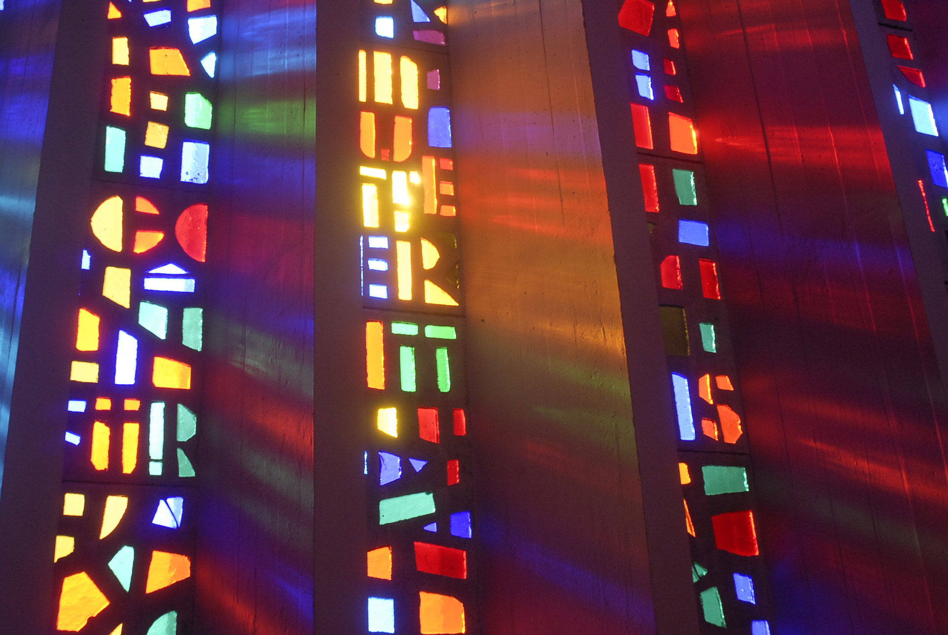 Bunte Glasfenster in der Neuen Pfarrkirche Vandans. (Foto: Gerhard Scopoli, 2. März 2011)