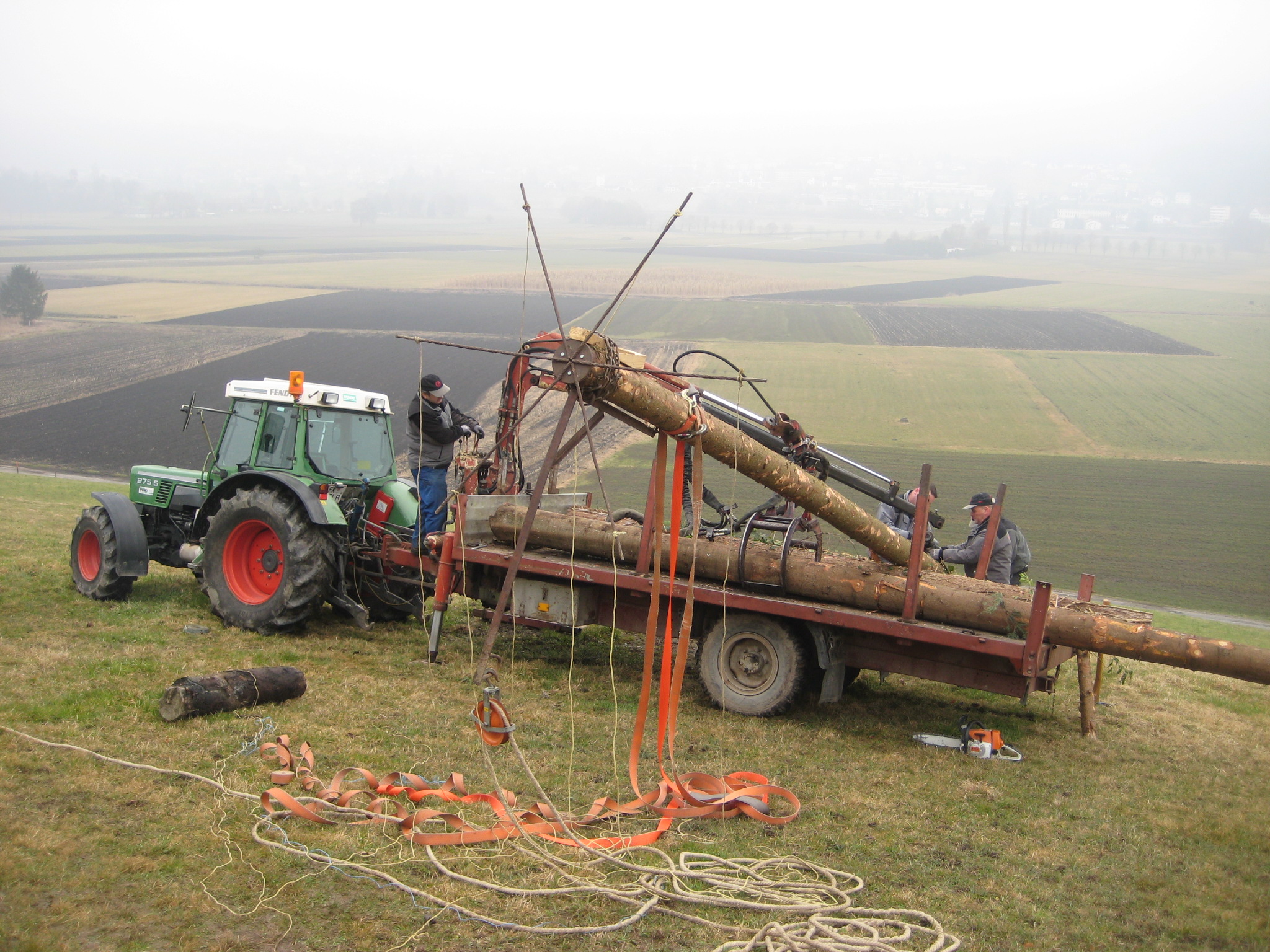 Die diesjährige Funkentanne wird aufgerichtet