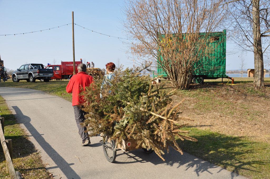 Zahlreiche Handwägelchen mit Bäumern wurden heute noch gebracht.