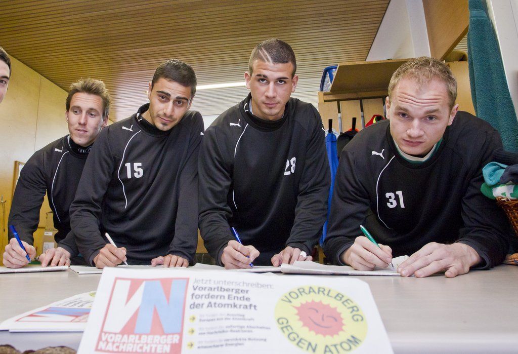 Wir sind dabei, ein Zeichen für die Zukunft der Erde zu setzen. Elias Kircher, Dursun Karatay, Dominik Rotter, Christoph Stückler, Alexander Kofler (Austria Lustenau)