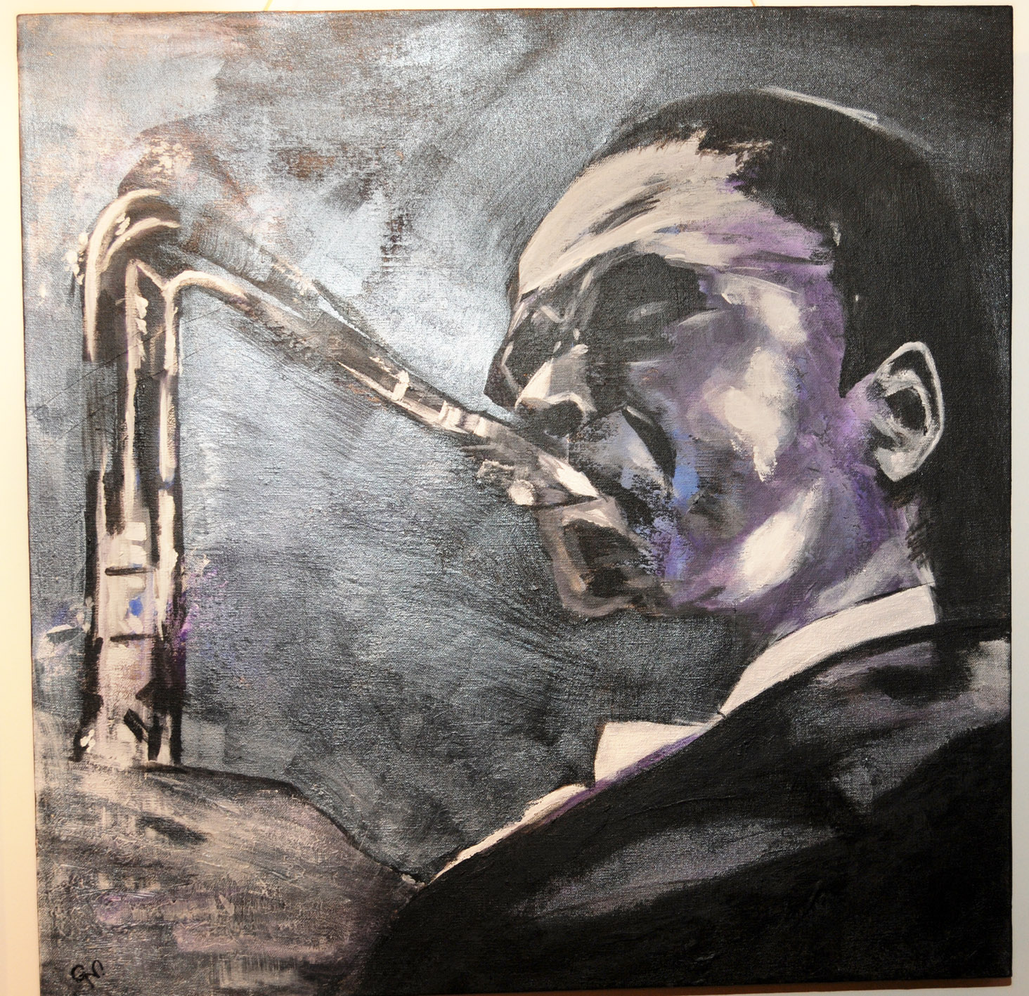 Saxophonspieler in Acryl von Gertraud Nagel