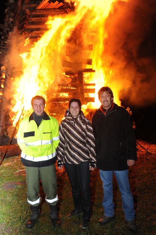 Funkenmeister Peter Gillitschka, die Gewinnerin der Funkenlotterie und Bgm. Fritz Maierhofer.