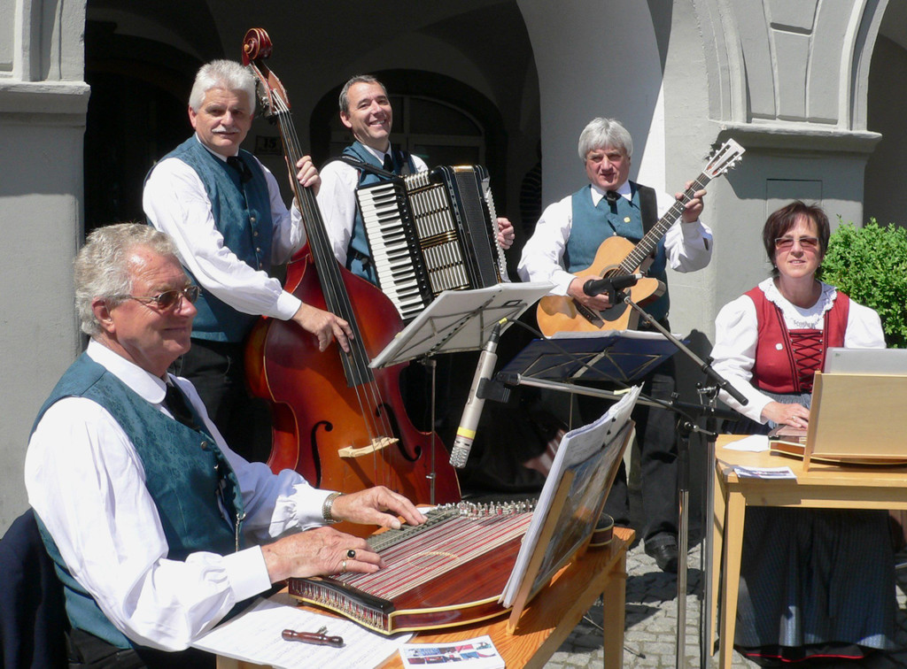 Die Musikanten bei der Trachtengruppe Feldkirch: v.l.: Fritz Trausenegger, Herbert Frei, Mario Hepberger, Wolfgang Kühne und Christine Dietrich