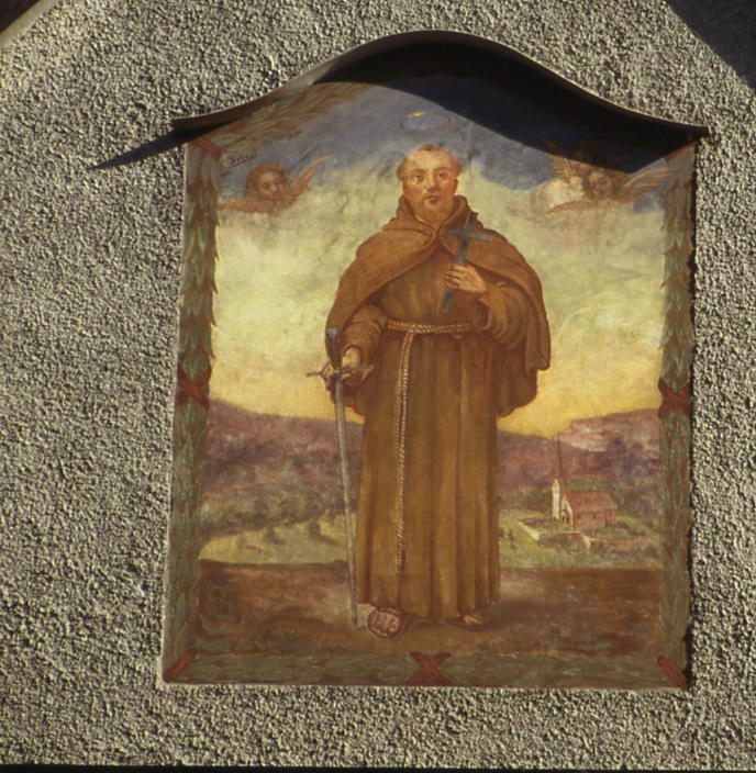 Das Bild des hl. Fidelis an der Kirchenwand.