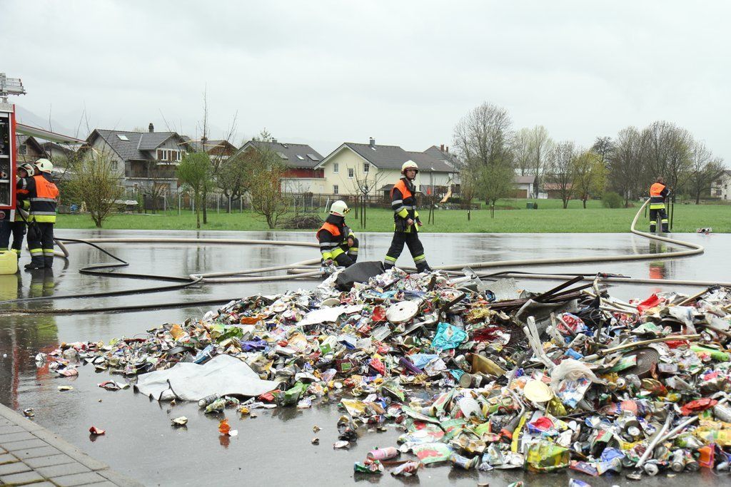 Recycling-Dosen in Brand geraten