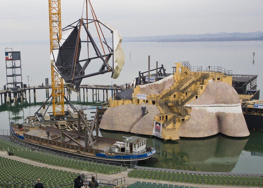 Spektakuläre Aufbauten auf der Seebühne für das neue Bühnenbild der Bregenzer Festspiele