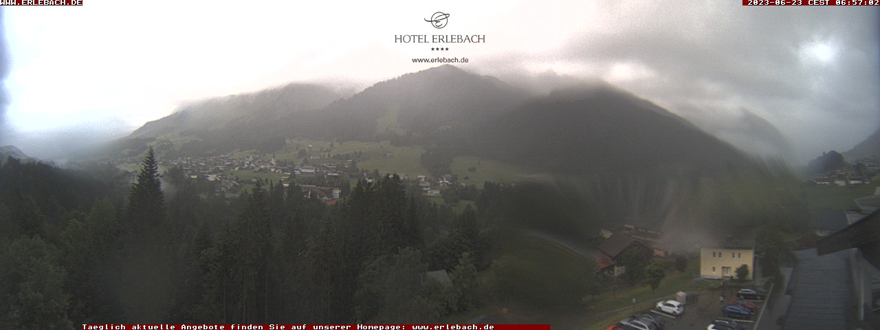 Blick ins Kleinwalsertal. Webcam "Hotel Erlebach" auf ca. 1.090 Meter Seehöhe. (Quelle: www.kleinwalsertal.com)