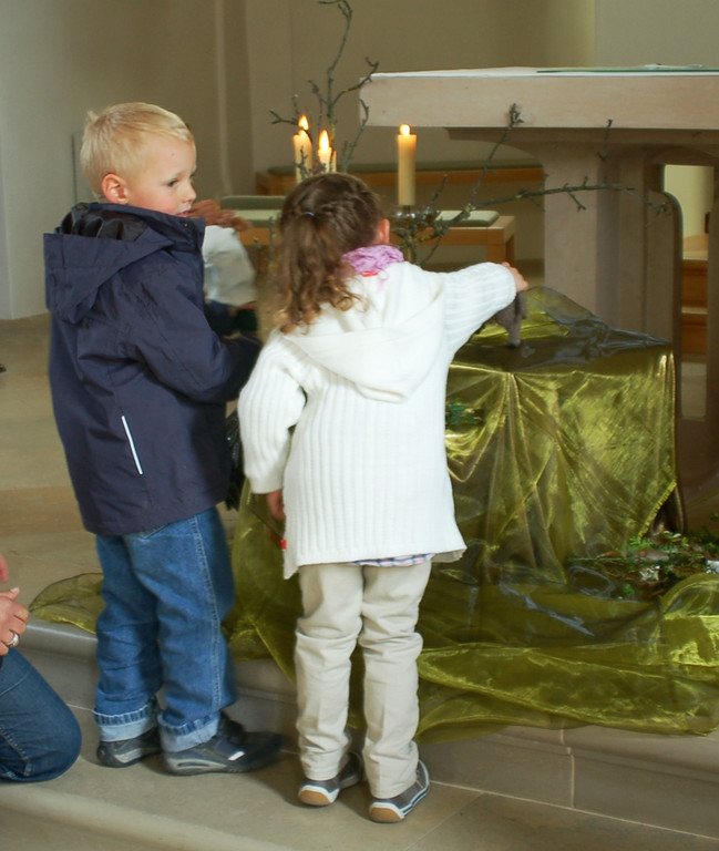 Esel und Jesus werden vor den Altar gelegt...