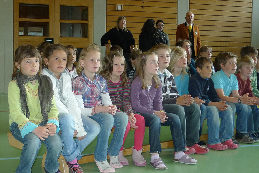 Die Volksschüler hören gespannt zu.